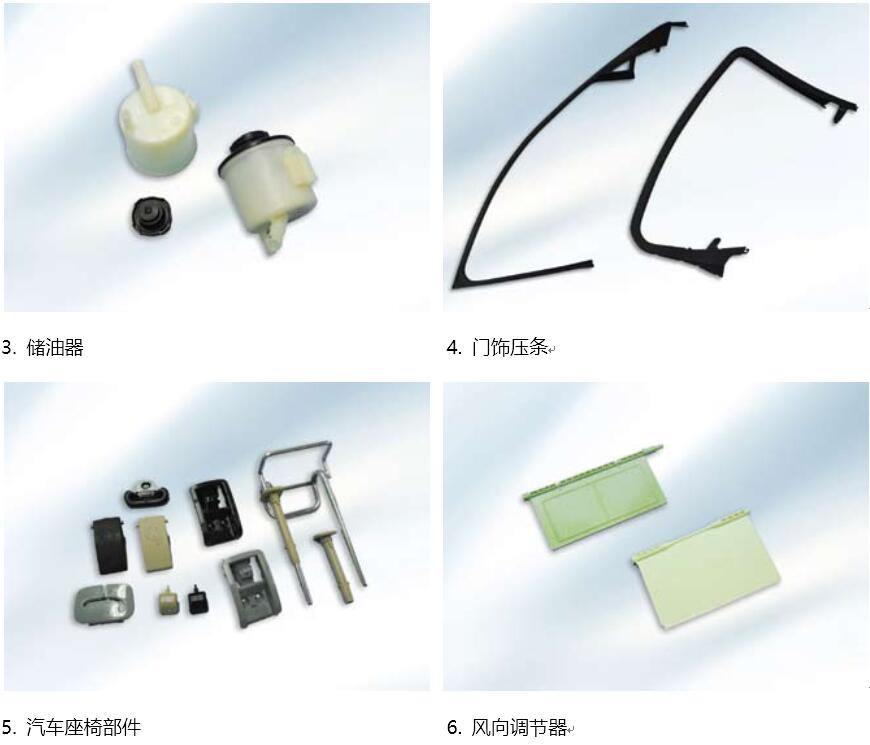 | 易脫模 | 1300CRH | 成型周期短 | 有快速成型要求的一般注塑:汽車座椅手柄,緊固件,卡扣,連接器,托架,扎帶 |